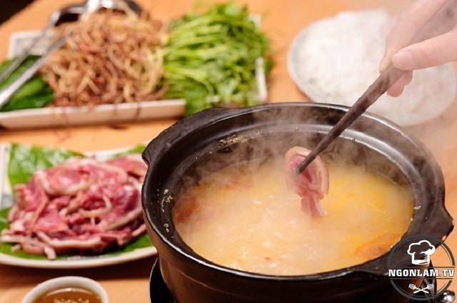 Mới đây tôi có dịp về Ninh Bình, ghé thăm người bạn và được gia đình bạn thết đãi mâm cỗ toàn thịt dê. Nhưng, có lẽ đặc biệt nhất là món dê nhúng mẻ vừa lạ miệng vừa bổ dưỡng, mát lành.