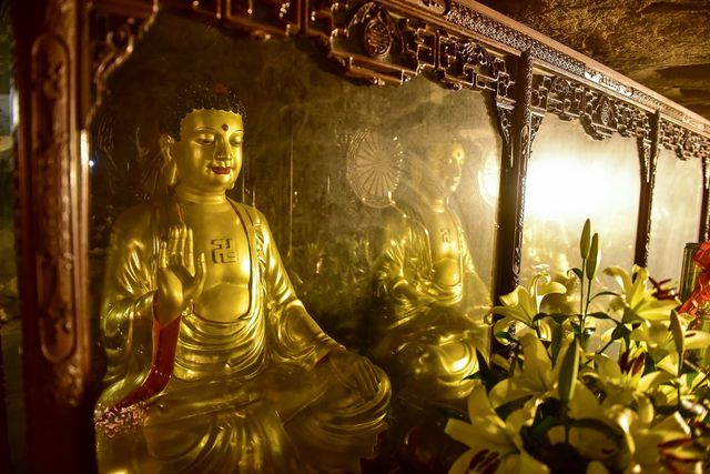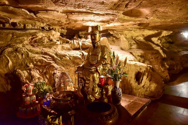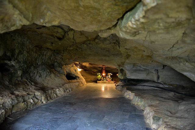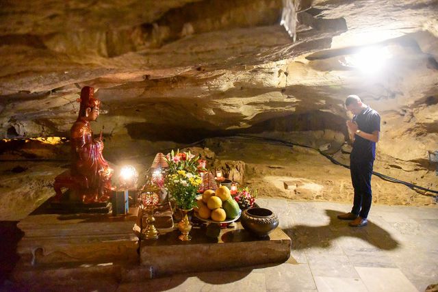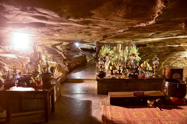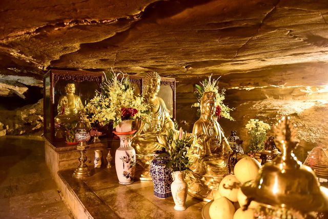 Bàn thờ Phật được đặt ngay chính giữa hang sơn động.