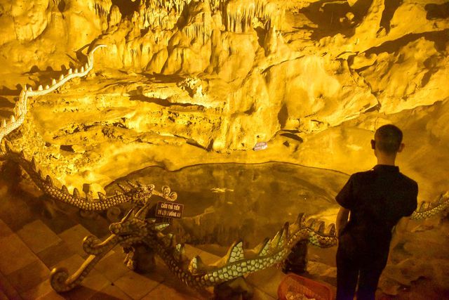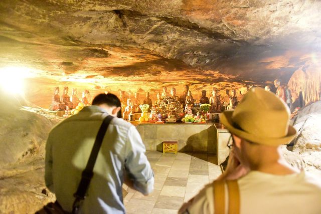 Bên trong hang Sáng, các pho tượng được đặt trang hoàng, linh thiêng
