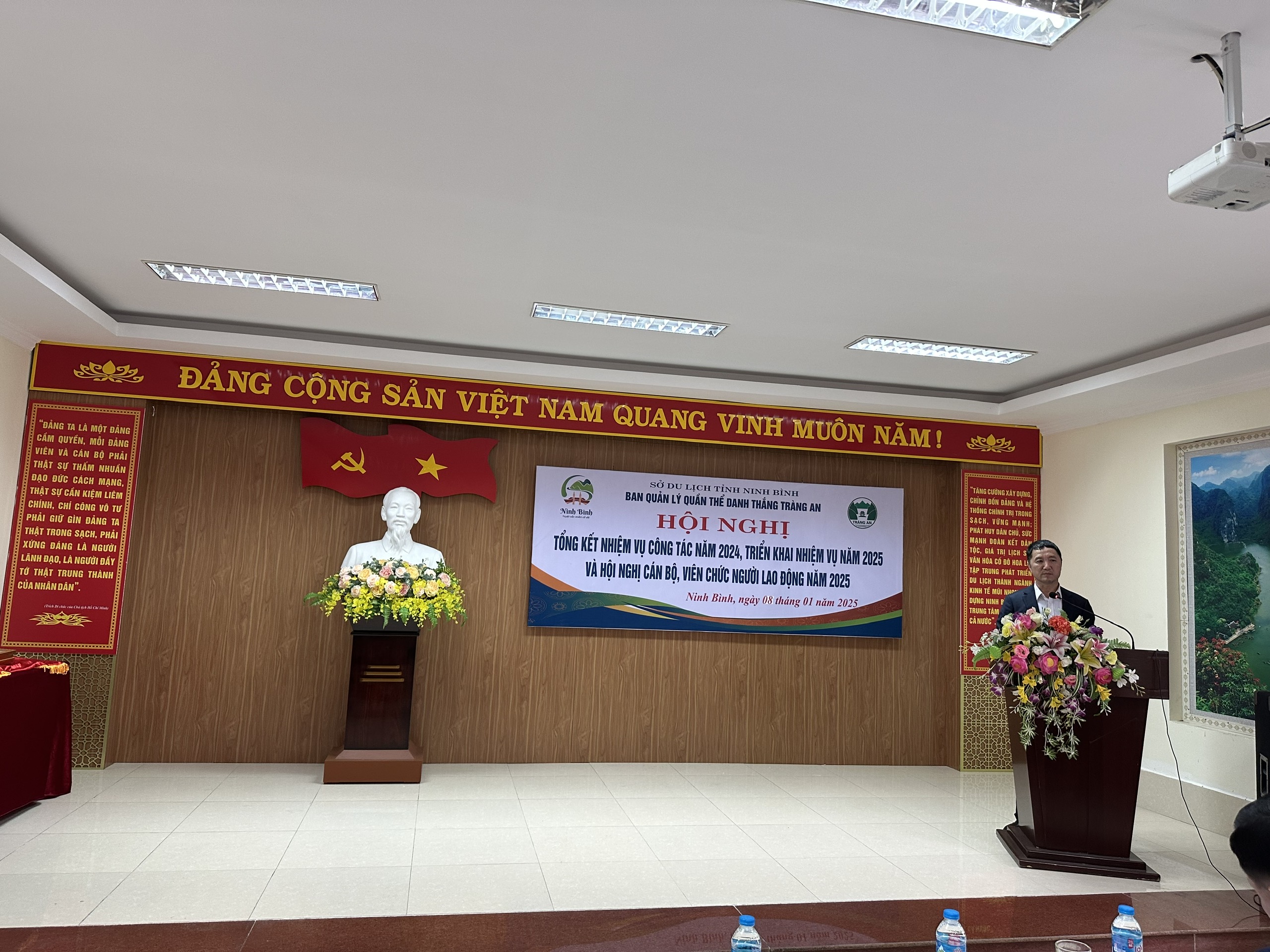 Ngày 08/01/2025, tại phòng họp tầng 3, trụ sở cơ quan, Ban Quản lý Quần thể danh thắng Tràng An đã tổ chức Hội nghị tổng kết nhiệm vụ công tác năm 2024, triển khai nhiệm vụ năm 2025 và hội nghị cán bộ, viên chức, người lao động năm 2025. Đồng chí Bùi Văn Mạnh, Tỉnh uỷ viên, Bí thư Đảng bộ, Giám đốc Sở Du lịch dự và chỉ đạo Hội nghị cùng sự tham dự của toàn bộ viên chức, người lao động trong cơ quan.