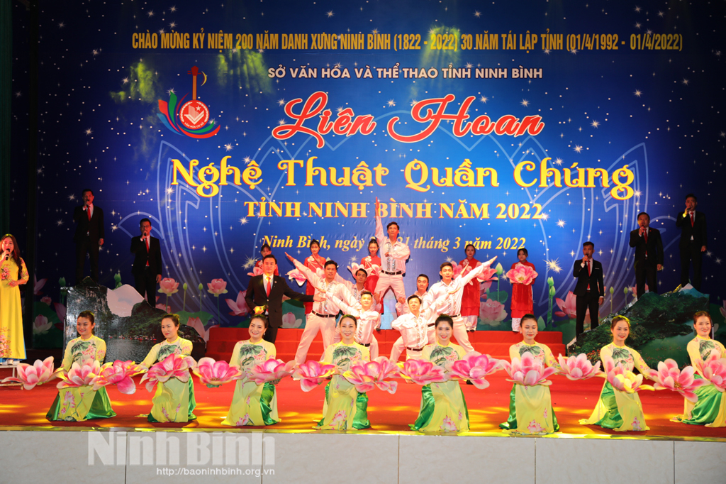 Tối 20/3 tại Trung tâm hội nghị tỉnh, Sở Văn hóa và Thể thao đã khai mạc liên hoan nghệ thuật quần chúng tỉnh Ninh Bình năm 2022.