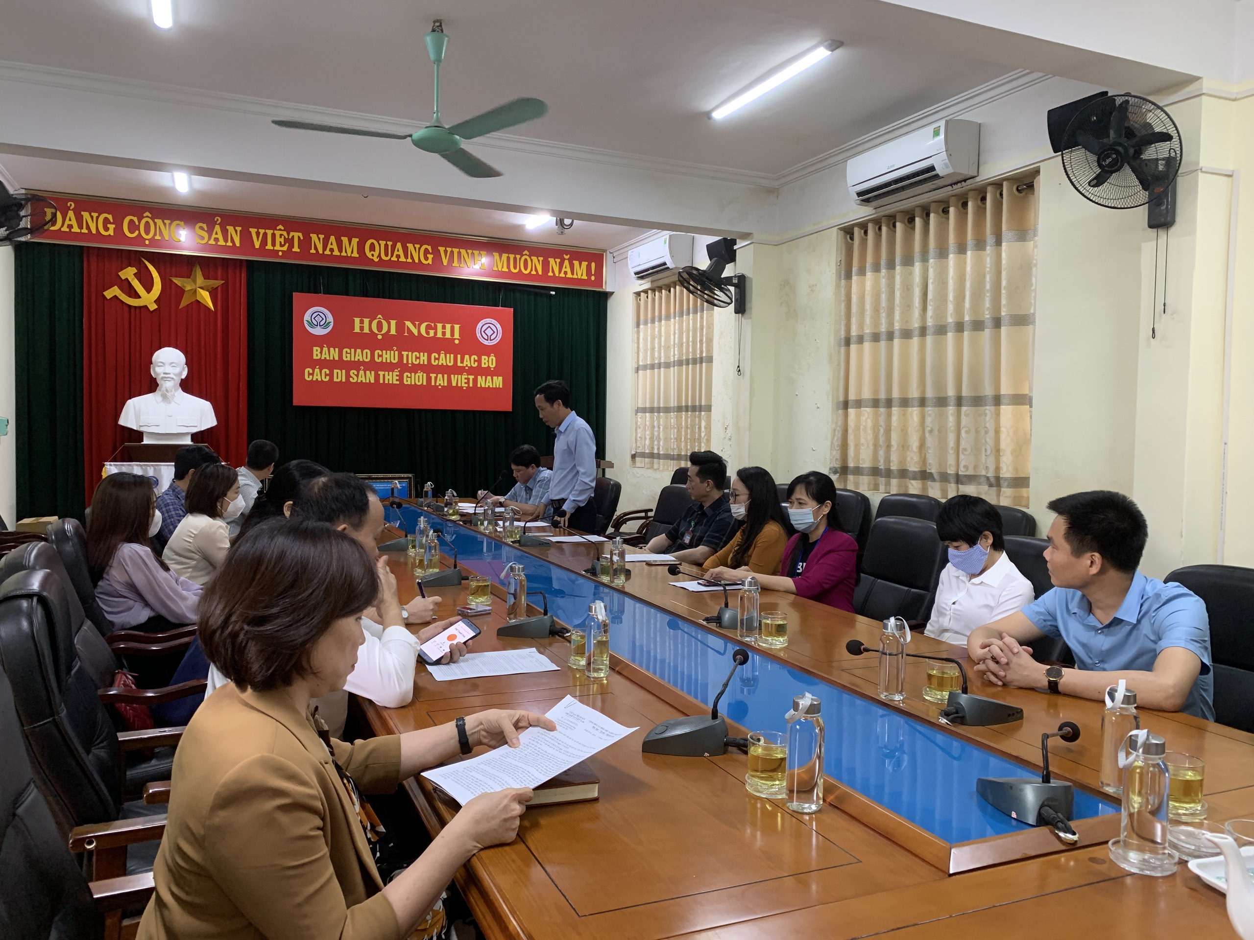 Thực hiện Quy chế Câu lạc bộ các Di sản sản thế giới tại Việt Nam, ngày 31/3/2022 tại Ninh Bình, Ban quản lý Quần thể danh thắng Tràng An đã tổ chức Hội nghị bàn giao chức danh Chủ tịch Câu lạc bộ các Di sản thế giới tại Việt Nam cho Trung tâm Bảo tồn Di sản Thành Nhà Hồ, tỉnh Thanh Hóa, nhiệm kỳ năm 2022.