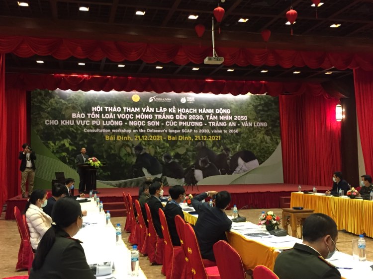 Sáng ngày 21/12/2021, tại Hội trường khách xá Bái Đính, xã Gia Sinh, huyện Gia Viễn, tỉnh Ninh Bình, Tổ chức Bảo tồn động, thực vật hoang dã Quốc tế (FFI) phối hợp với Sở Du lịch tỉnh Ninh Bình tổ chức Hội thảo tham vấn các chuyên gia trong nước và quốc tế nhằm xây dựng kế hoạch hành động bảo tồn loài Voọc mông trắng đến năm 2030, tầm nhìn đến năm 2050 cho cụm sinh cảnh Pù Luông (Thanh Hóa) – Ngọc Sơn (Hòa Bình) – Cúc Phương – Tràng An – Vân Long (Ninh Bình).