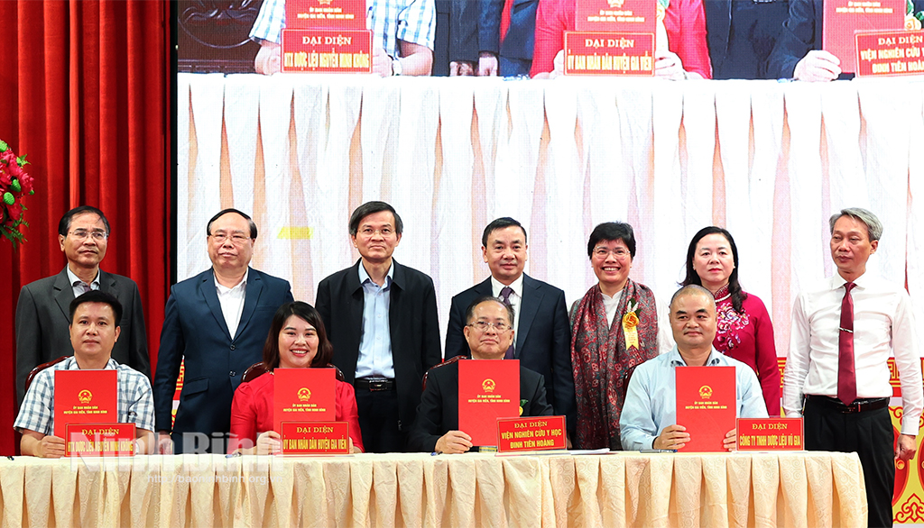 Tại Toạ đàm, nhằm cụ thể hóa những mục tiêu, nội dung hợp tác cũng như kế hoạch phát triển trong tương lai, Viện Nghiên cứu Y học Đinh Tiên Hoàng và UBND huyện Gia Viễn đã ký kết hợp tác trong nghiên cứu dược liệu; Viện Nghiên cứu Y học Đinh Tiên Hoàng-HTX Dược liệu Nguyễn Minh Không-Công ty Dược liệu Vũ Gia ký kết hợp tác về chuyển giao kỹ thuật trồng, chế biến dược liệu và nghiên cứu chế tạo thuốc từ Trà hoa vàng Ninh Bình.