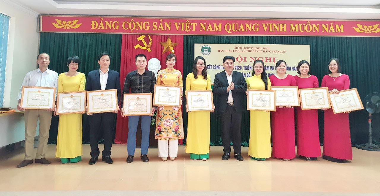 Với những kết quả đạt được trong năm vừa qua, thay mặt Ban lãnh đạo Sở Du lịch, đồng chí Phạm Duy Phong, Phó Giám đốc Sở đã biểu dương, khen thưởng tập thể và các cá nhân có thành tích xuất sắc trong năm 2020. Theo đó, tập thể Ban Quản lý Quần thể danh thắng Tràng An được tặng Giấy khen của Giám đốc Sở Du lịch, 04 cá nhân đạt danh hiệu Chiến sĩ thi đua cơ sở, 12 cá nhân được tặng Giấy khen của Giám đốc Sở Du lịch.