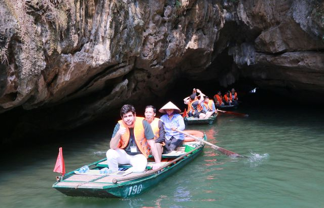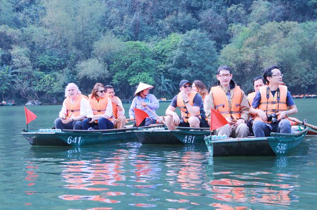 Sau khi thưởng thức trà, cà phê và ăn nhẹ, đoàn lên thuyền bắt đầu tham quan di sản Tràng An. Lịch trình tham quan, đoàn được đưa đi theo tuyến tham quan số 2: Bến thuyền – Hang Lấm – Đền thánh Cao Sơn – Hang Vạng – Hang Thánh trượt – Đền suối Tiên – Hang Đại – Hành cung vũ lâm – Phim trường Kong.