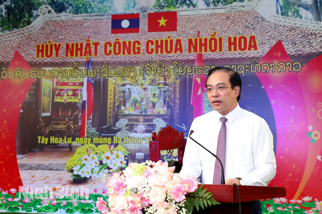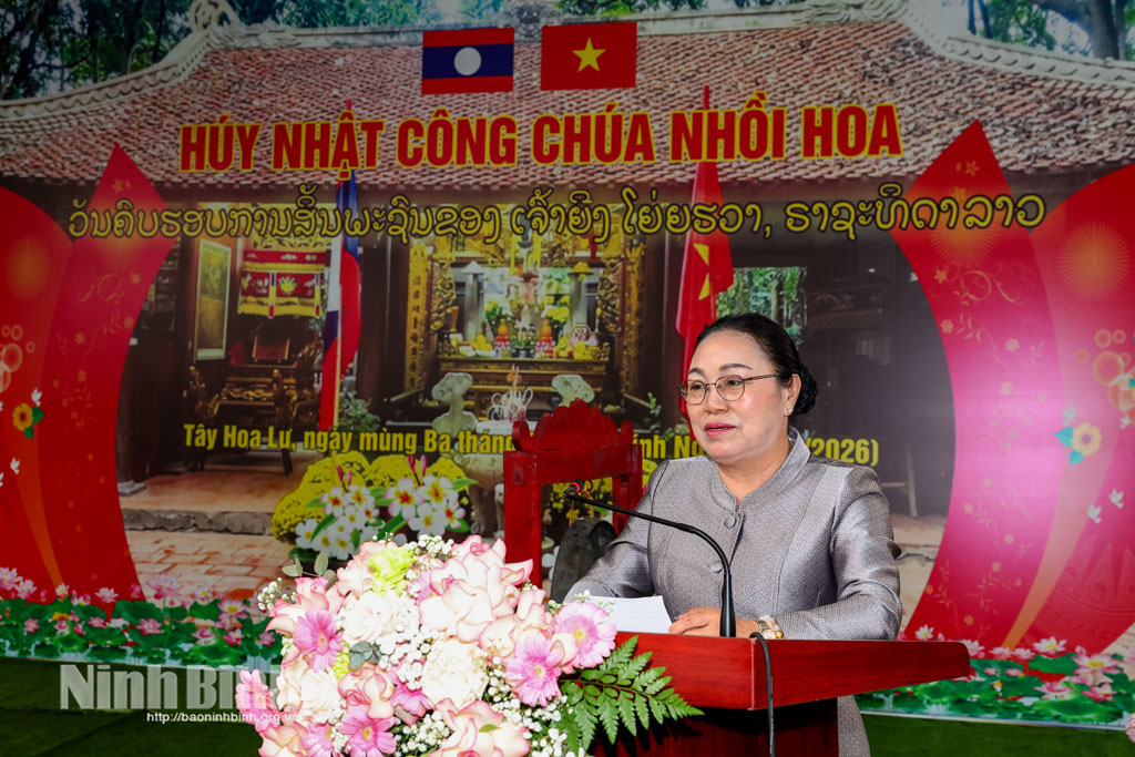 Phát biểu tại lễ khai mạc, bà Khamphao Ernthavanh, Đại sứ đặc mệnh toàn quyền nước CHDCND Lào tại Việt Nam thay mặt Đảng, Nhà nước và Nhân dân Lào bày tỏ lòng cảm ơn sâu sắc đối với tỉnh Ninh Bình, đặc biệt là Nhân dân phường Tây Hoa Lư đã gìn giữ, bảo tồn và tổ chức lễ tưởng niệm hằng năm, giúp nơi đây trở thành một địa điểm linh thiêng gắn bó lâu dài với địa phương.
