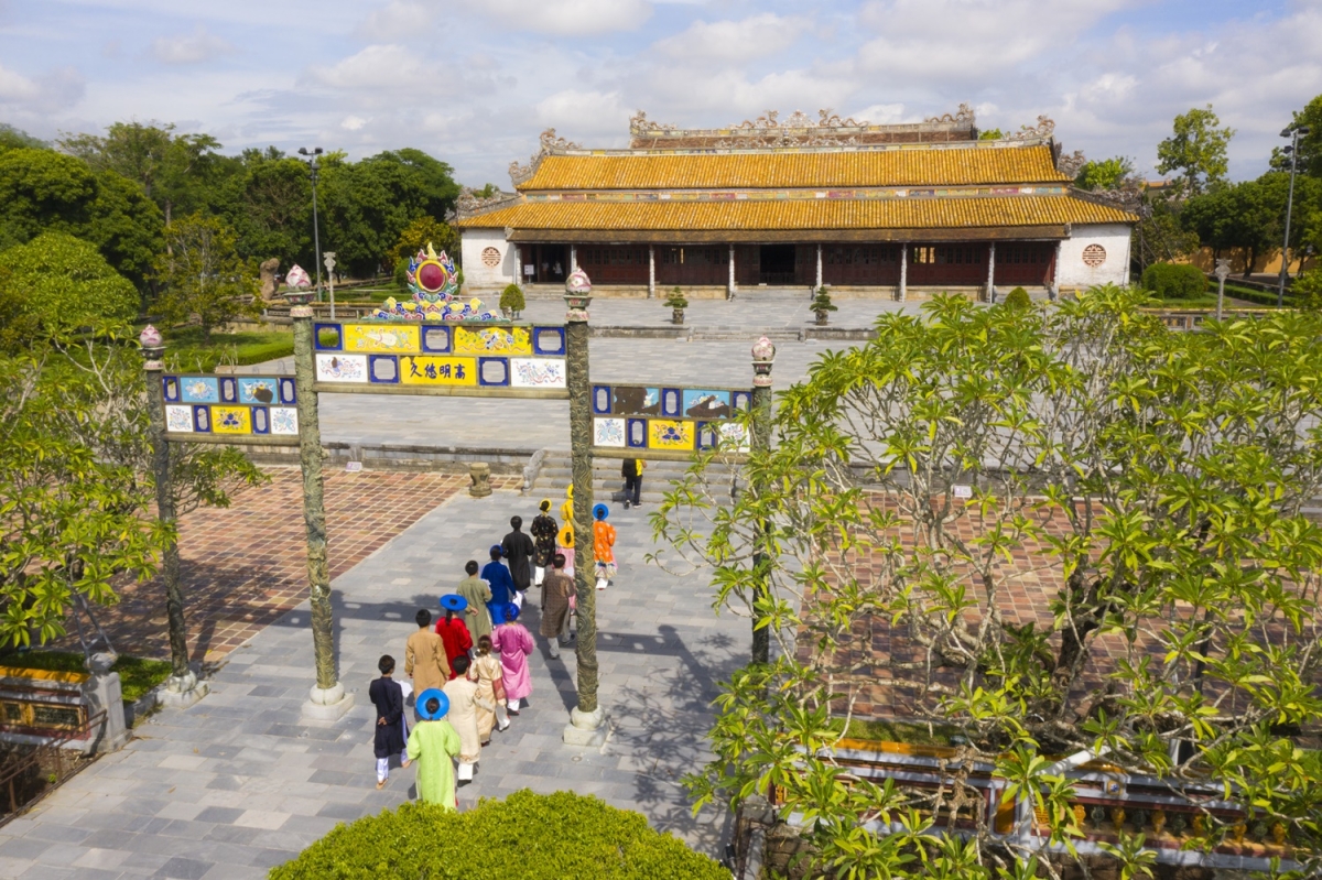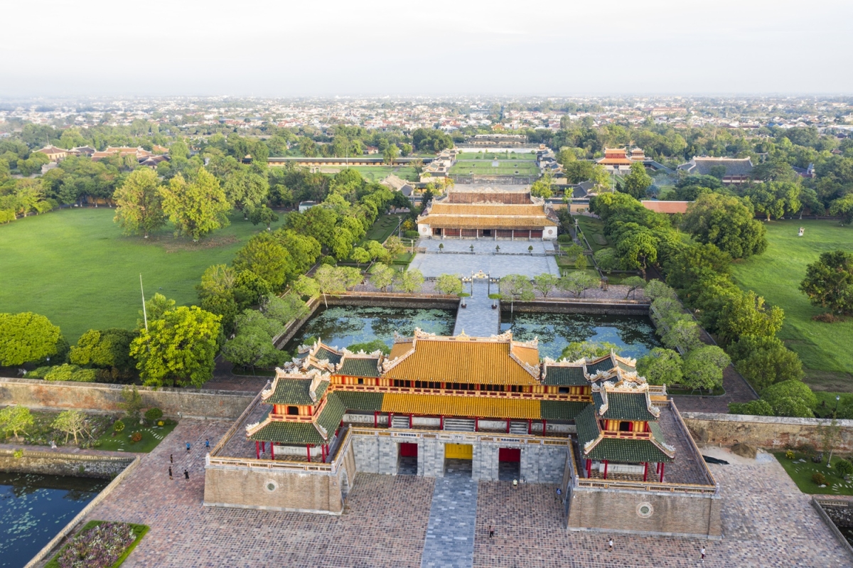 Quần thể di tích Cố đô Huếđược xây dựng từ khoảng đầu thế kỷ 19 đến nửa đầu thế kỷ 20 giữa kinh đô xưa. Quần thể được UNESCO công nhận là Di sản văn hóa thế giới năm 1993. Nổi bật trong đó là ba tòa thành: Kinh Thành, Hoàng Thành và Tử Cấm Thành được bố trí đăng đối xuyên suốt trên một trục nam – bắc.