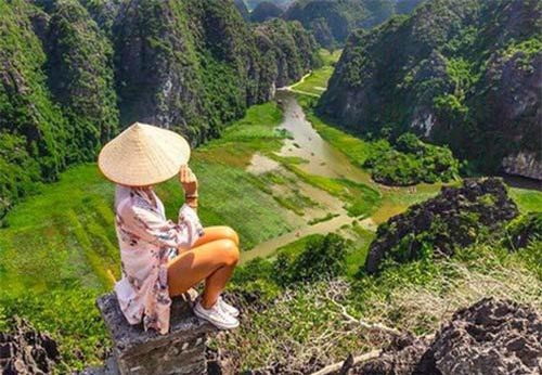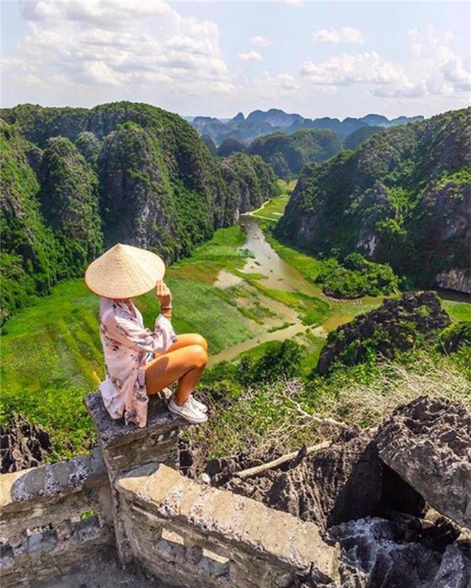 Từ đỉnh Hang Múa, bạn có thể phóng tầm mắt xuống sông Ngô Đồng phía dưới.