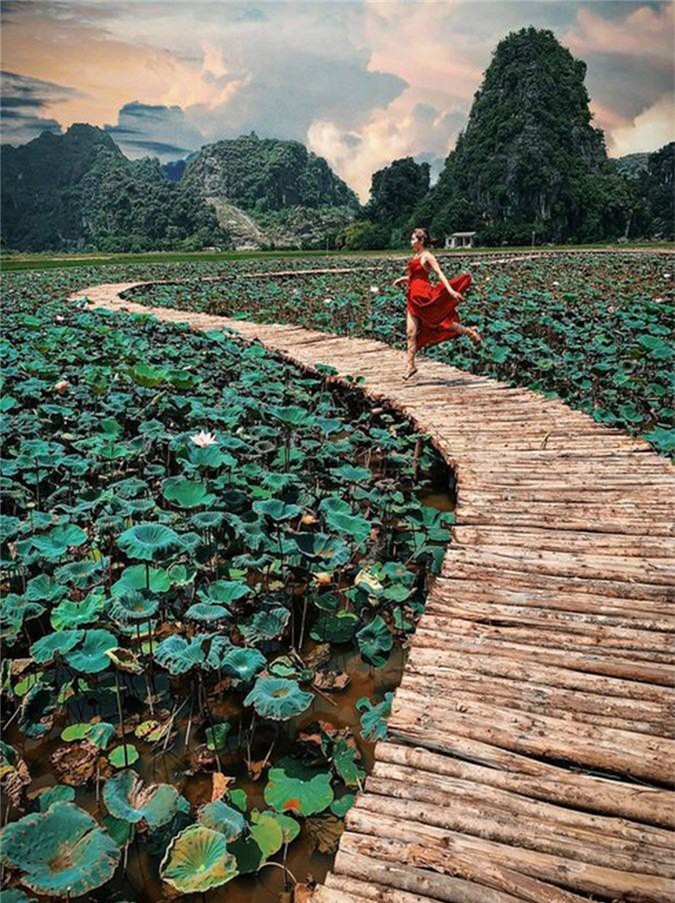 Được biết, hồ sen kỳ lạ trên nằm ngay cạnh “đệ nhất check-in miền Bắc” Hang Múa. Hồ sen chính là điểm nhấn của khu du lịch hot nhất Ninh Bình những năm qua.