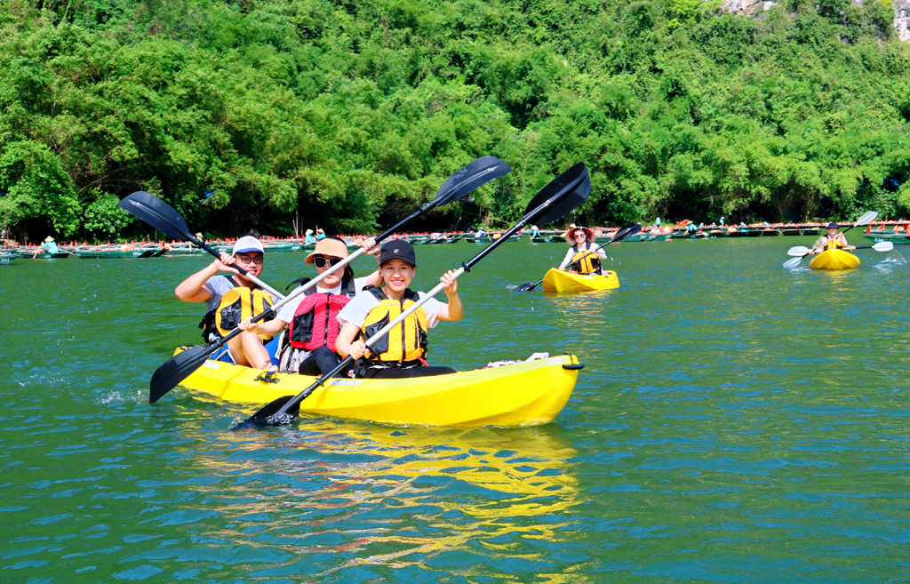 Đến Ninh Bình tham quan di sản thế giới Tràng An, ngoài ngồi thuyền truyền thống ngắm cảnh, giờ đây du khách còn có thêm trải nghiệm mới là chèo thuyền kayak để tự chiêm ngắm vẻ đẹp hùng vĩ nơi này.