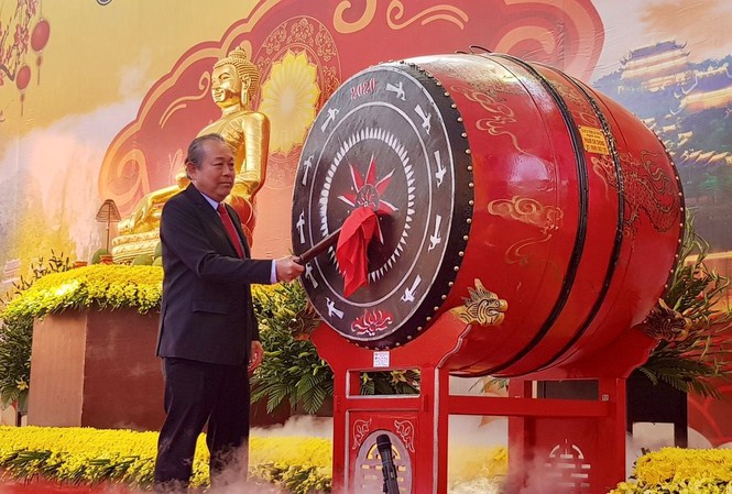 Ngày 30/1 (mồng 6 Tết Nguyên đán Canh Tý 2020), Phó Thủ tướng Trương Hòa Bình đánh trống khai hội chùa Bái Đính (Ninh Bình).