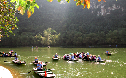 Ngày cuối tuần, rất đông khách du lịch đổ về Ninh Bình để một lần được vãn cảnh đẹp của Quần thể danh thắng Tràng An – Di sản Văn hóa và Thiên nhiên thế giới.